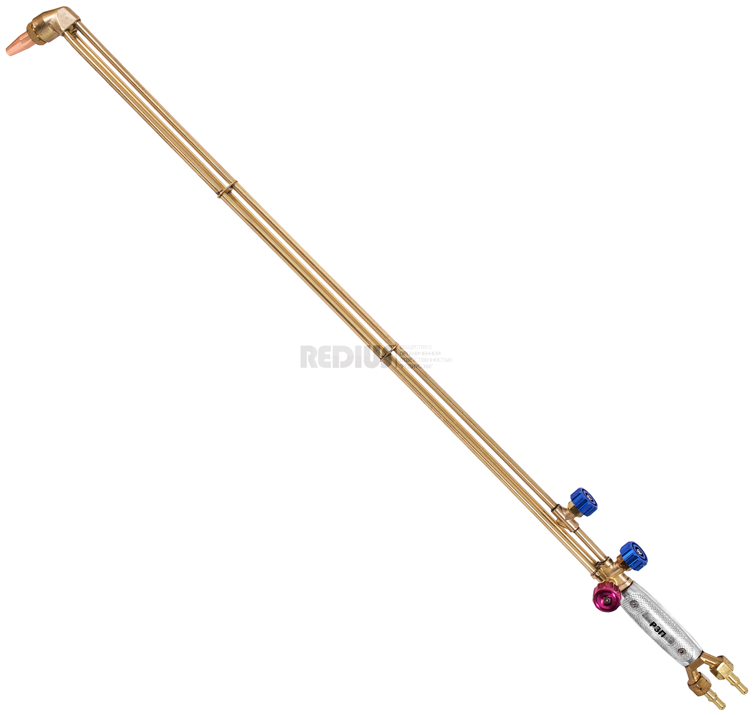 Резак трехтрубный пропано-кислородный с внутрисопловым смешением газов предназначен для резки раскроя и разогрева деталей, заготовок, листового и сортового проката из черных металлов. За счет внутрисоплового смешения газов резаки имеют повышенную стойкость к обратному удару и способны длительное время работать в тяжелых условиях. Резак имеет стандартный мундштук «PNM» и совместим с мундштуками других производителей