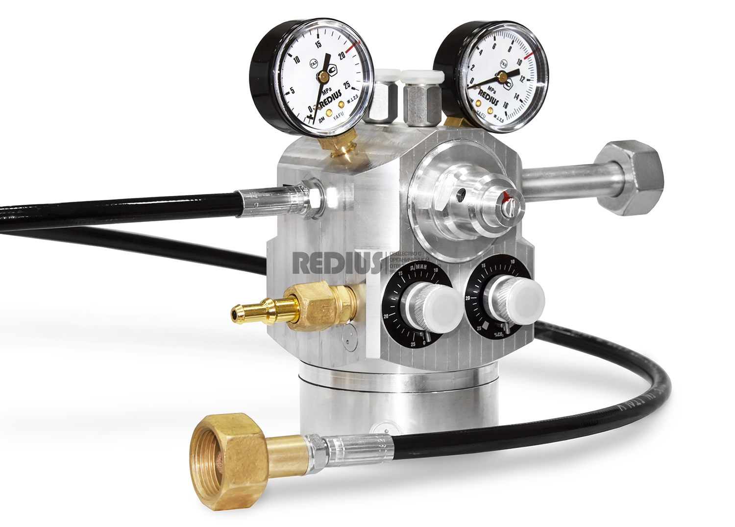 - Давление задающего газа CO2 на входе в смеситель, Pvmin 8 бар, max 100 бар